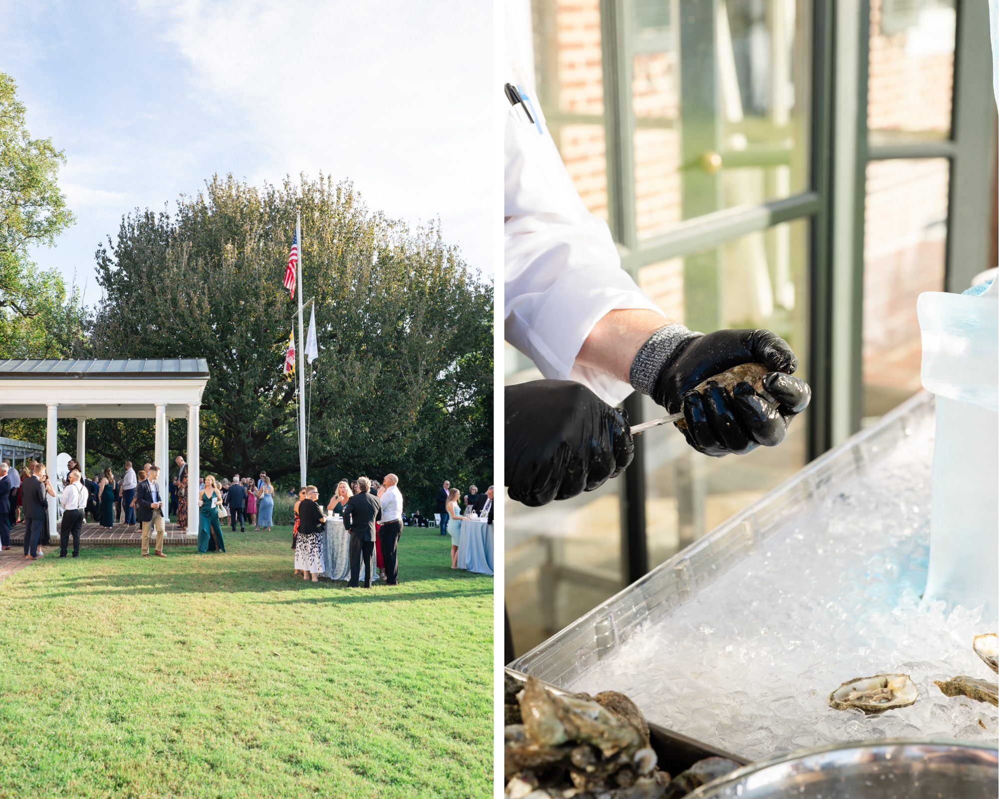 LAWN COCKTAIL HOUR WITH OYSTERS AND A CUSTOM ICE SCULPTURE