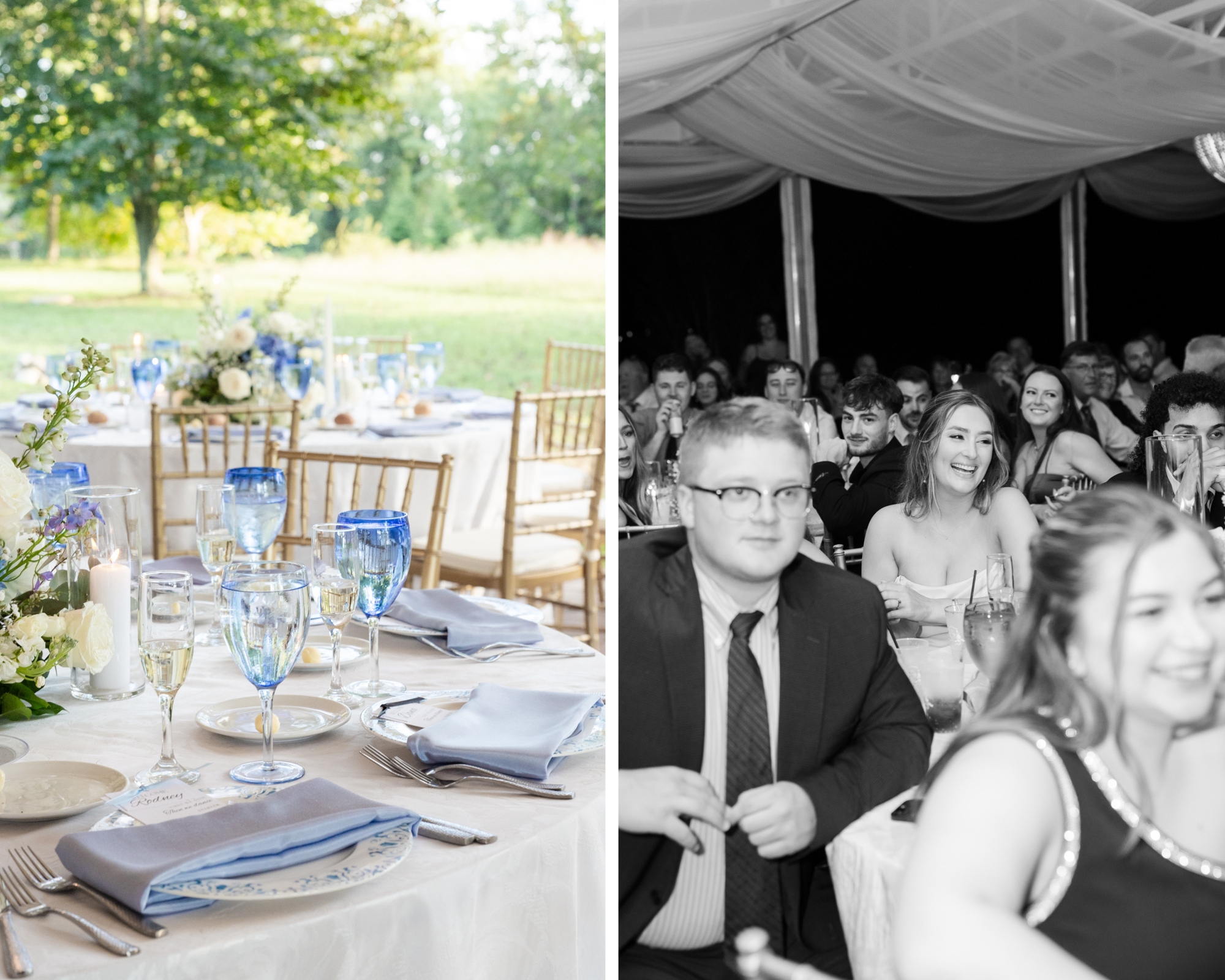 Bohemia Manor Farm is one of those venues that gives you options without feeling scattered. The property is huge, and each space has its own mood: the manor house for getting ready, an open lawn for cocktail hour, a long tree-lined driveway for portraits, and the sail tent reception space that feels magical once the sun goes down. It’s a true Maryland waterfront venue, and Maddie and Anthony leaned into that setting in the best way.