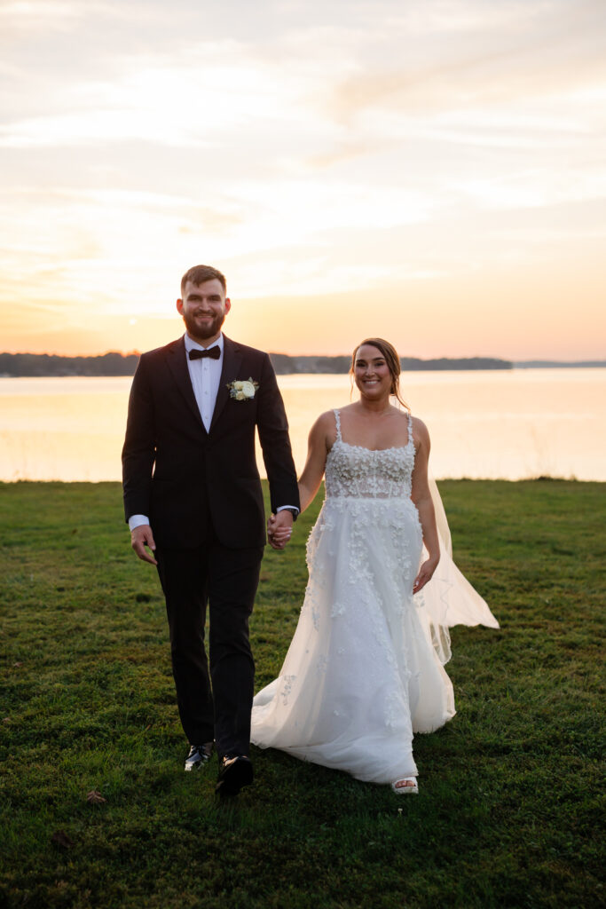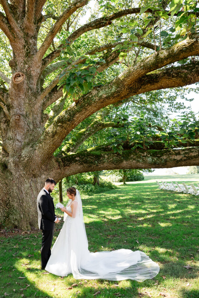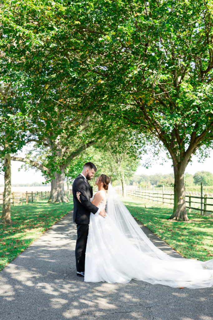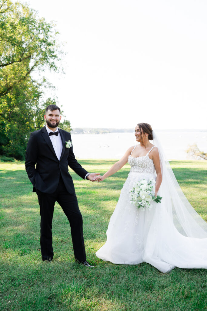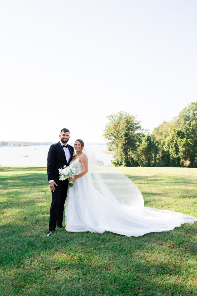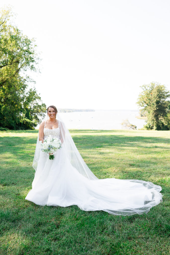Bohemia Manor Farm is one of those venues that gives you options without feeling scattered. The property is huge, and each space has its own mood: the manor house for getting ready, an open lawn for cocktail hour, a long tree-lined driveway for portraits, and the sail tent reception space that feels magical once the sun goes down. It’s a true Maryland waterfront venue, and Maddie and Anthony leaned into that setting in the best way.