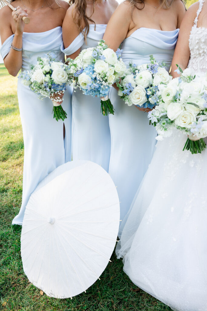 LIGHT BLUE BRIDESMAID DRESSES AND WHITE PARASOLS