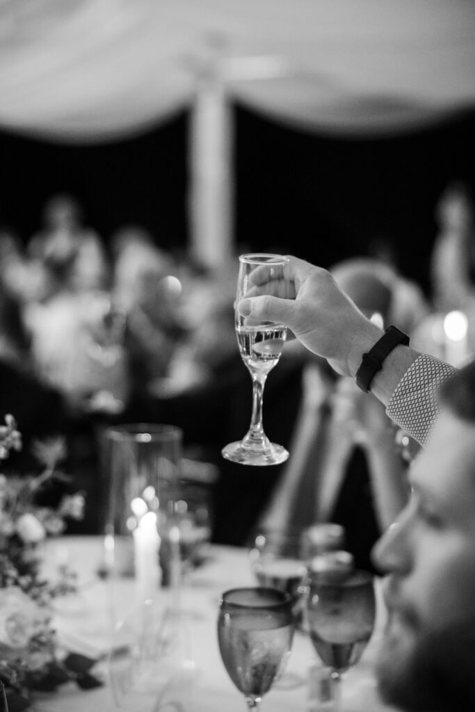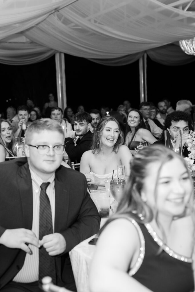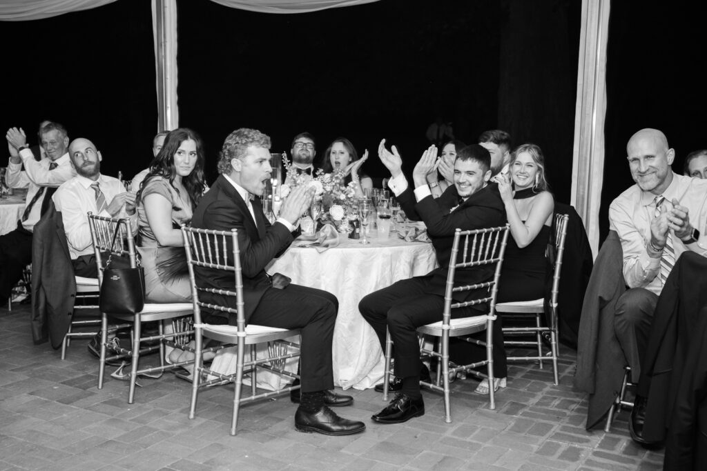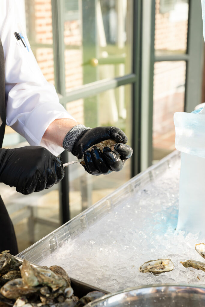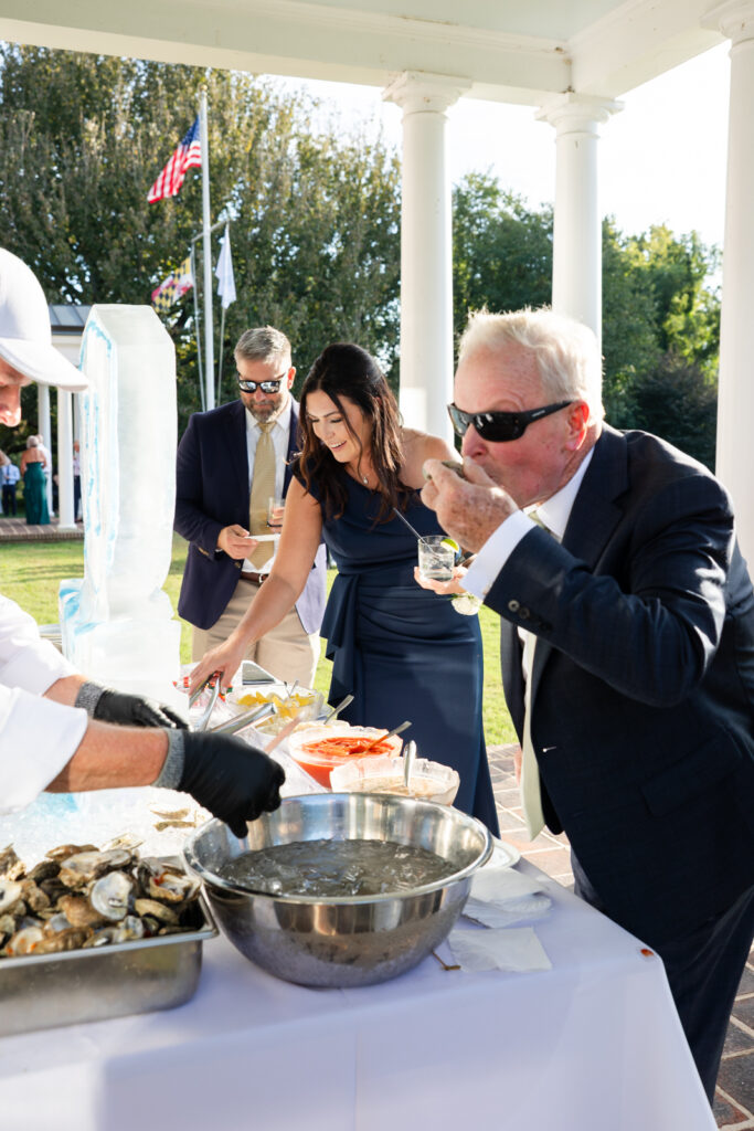 Cocktail hour was held on the lawn, and it was a true guest experience moment. There was an oyster bar, and Ice and Spices created a custom ice sculpture featuring Maddie and Anthony’s wedding monogram. It was so fun and surprising, and guests were genuinely obsessed. Two Rivers Chamber Music continued through cocktail hour, which kept the energy elevated while still feeling relaxed.