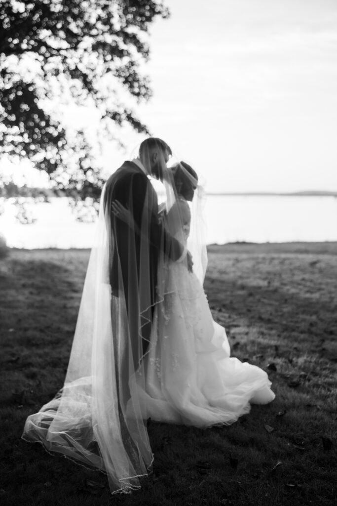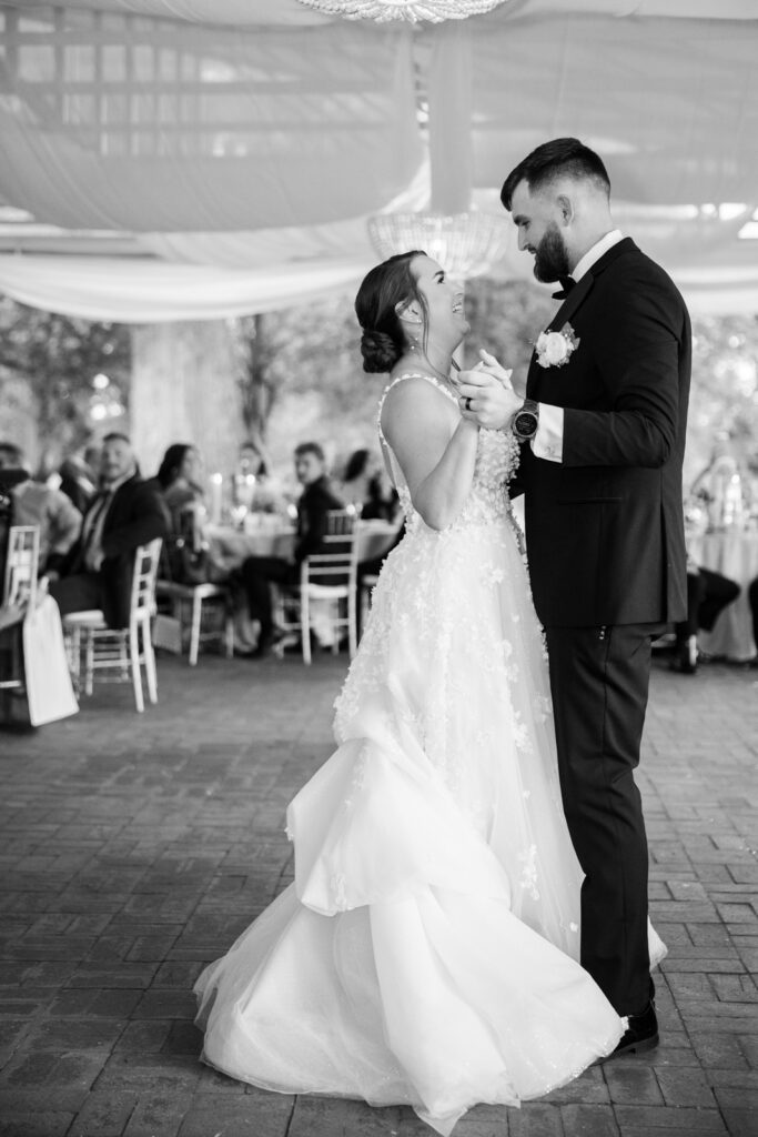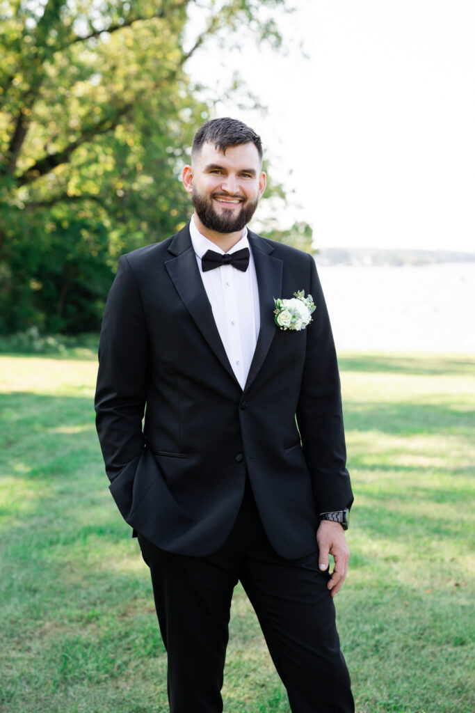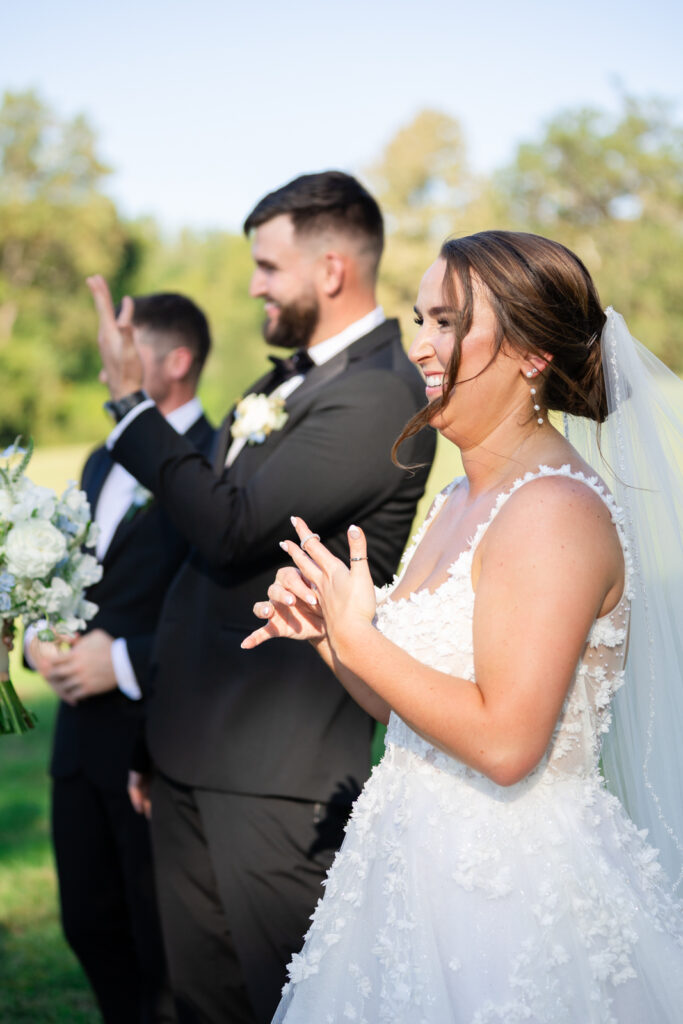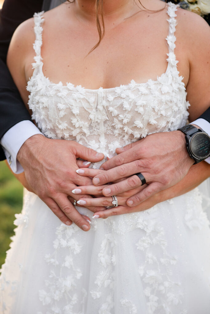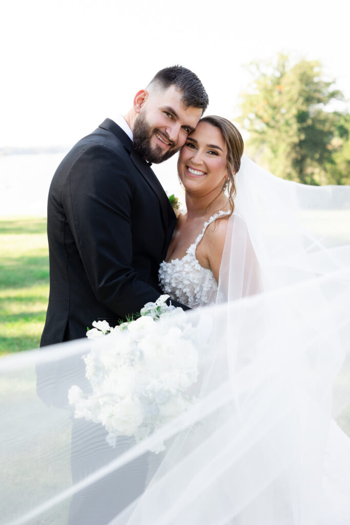 The reception took place under the white sail tent, and once the sun set, it turned into one of those magical summer nights. With draping by On Your Mark Lighting, the space felt soft and romantic, and the open-air tent made it feel like dinner and dancing were happening under the stars. DJ Jimmy T Entertainment kept the party moving, Sweet Somethings Dessert Shop handled the cake, and Just Hitched Films captured the day alongside me.