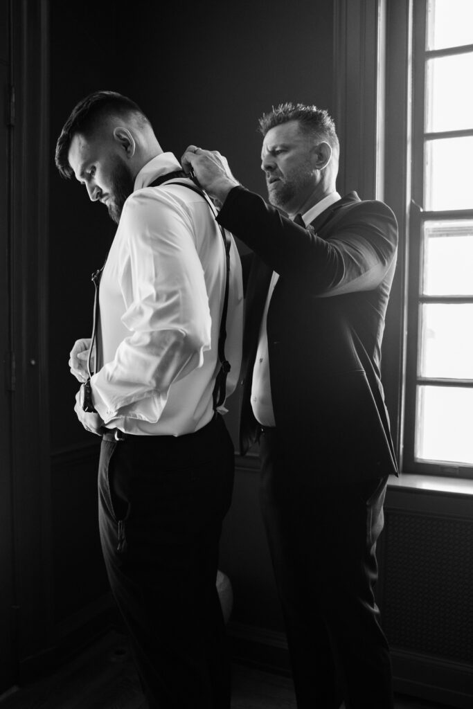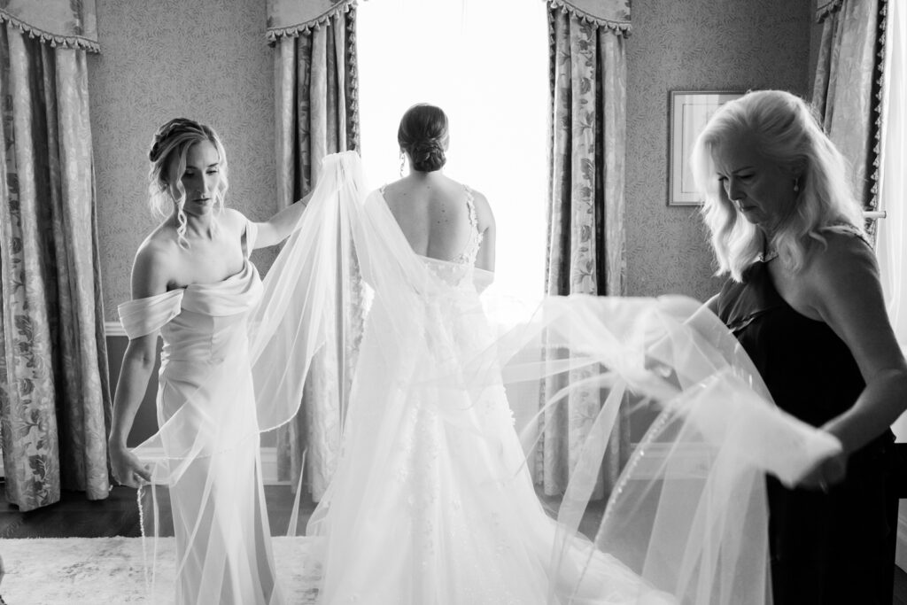The manor house is ideal for a calm start to the day. Light-filled rooms, plenty of space to spread out, and a setting that feels timeless without being fussy. Maddie’s hair by Katie McGee was pulled into a low romantic bun with soft pieces framing her face, a classic look that photographed beautifully from every angle. Makeup by JNP Beauty tied everything together with a polished, natural finish that still felt like her.