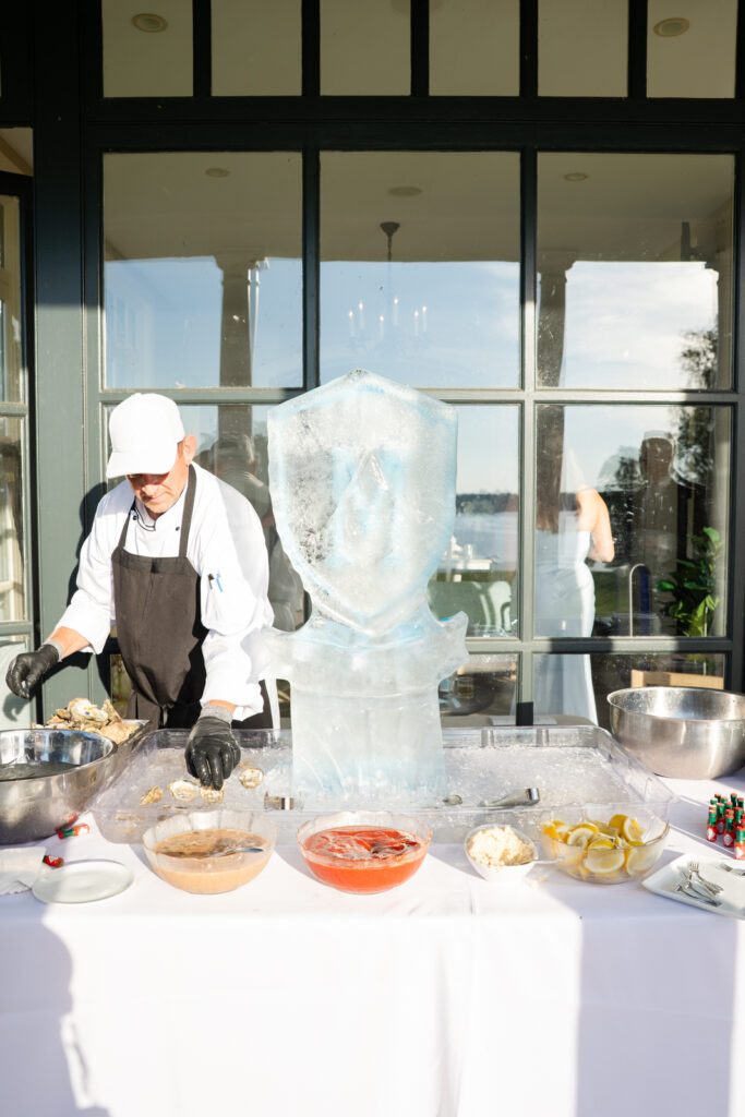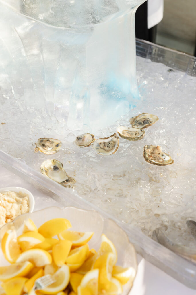 LAWN COCKTAIL HOUR WITH OYSTERS AND A CUSTOM ICE SCULPTURE